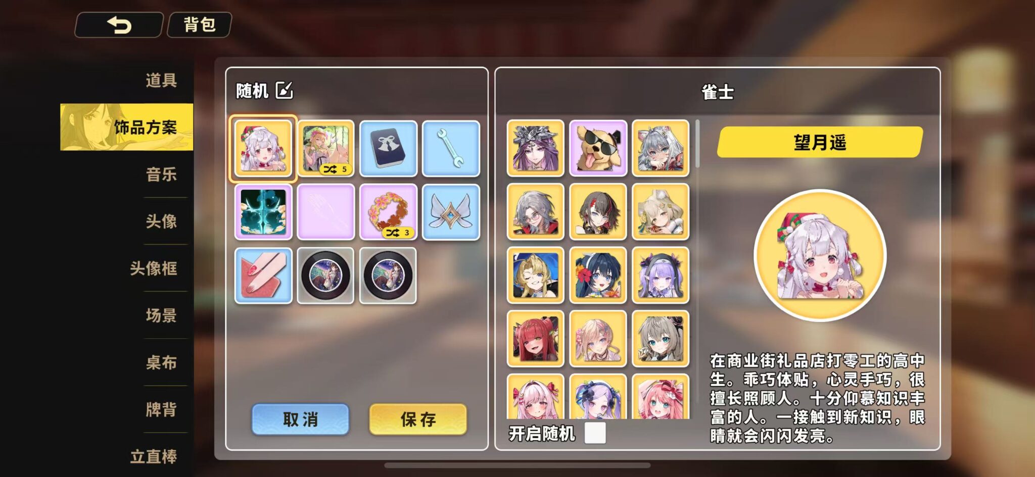 雀士大大可以从【背包-饰品方案】进入功能,添加和配置自己的装饰方案;还可以选择多个装饰品,在牌局内随机展示。